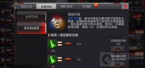 生化挑战营是818好玩节当天推出的活动。玩家通过参与生化模式,依照成绩排名每次能获得1到3个“生化原液”,玩家通过积攒“生化原液”能够兑换MK5—火焰的碎片。