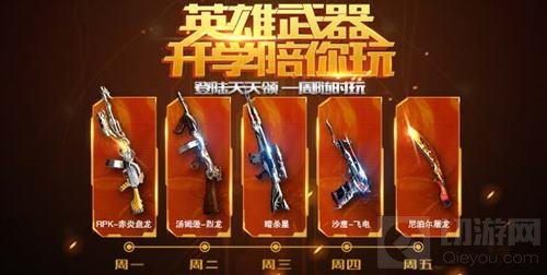 作为以回馈玩家为主旨的大型运营活动,本次“开学季,英雄武器狂欢周”规则极为简单,在9月5日至11日(周一至周五),玩家每登录一天游戏即可获得对应的“英雄武器体验卡”,其中周一至周五分别为玩家奉上RPK-赤炎盘龙、汤姆逊-烈龙、暗杀星、飞电、屠龙五大英雄武器,让你一次玩个够!
