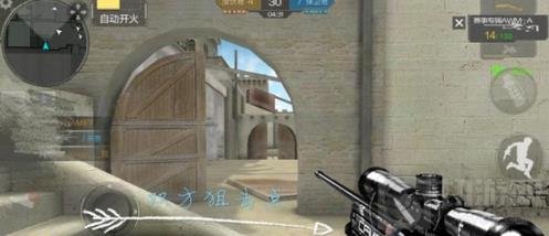 “小道”转出来的位置,可以看到对面狙击手站的位置,在他在“对狙”时,肯定是无法兼顾这个位置的,所以这个位置偷袭敌人易如反掌。