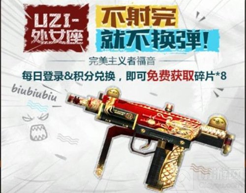 自9月2日到9月18日,每日登陆即送永久星座级武器【UZI-处女座】武器碎片3个!集齐60个即可获得完整武器!