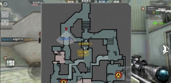 先说说A点,建议玩家使用狙击枪。首先,开局直接在自己家门口瞄准敌人,可以观察到去A点的敌人,反应快的玩家可以在第一时间将其消灭。其次,位于A点的保卫者只能看到通风口与A门,因此他们的防守重点肯定在这两点。玩家可以使用闪光弹干扰视线,利用敌人致盲的瞬间狙击对方。这对玩家的狙击水平要求较高,对自己不自信的玩家建议不要尝试。
