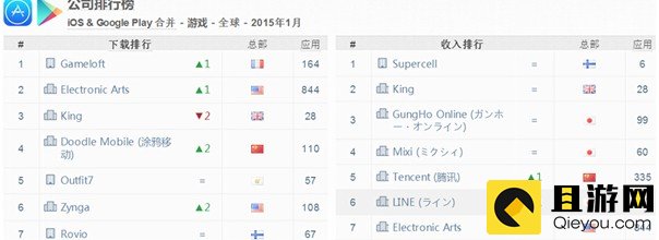 2015年1月全球手游发行商排行榜
