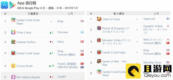 2015年1月全球手游综合排行榜