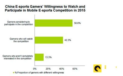 近日国内的一个数据可能可以支撑Kristian Segerstrale的观点,在艾瑞咨询近期的报告中提到,1262名中国手游玩家中,有56.6%的玩家在采访中明确表示愿意考虑参加比赛,同时,42%左右的玩家表示他们虽然不参加,但愿意来看比赛。