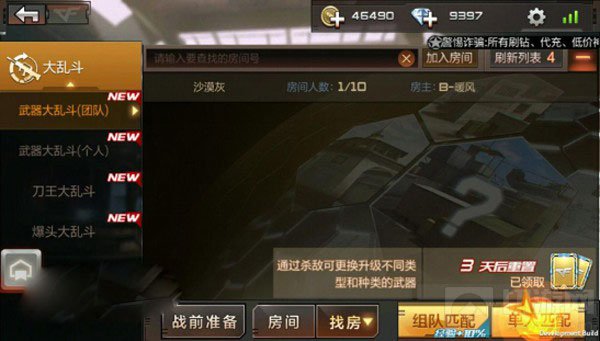 武器大乱斗可以分为团队大乱斗和个人大乱斗,这两种武器大乱斗的类型,无论是团队武器大乱斗模式还是个人武器大乱斗模式,他的规则都是类似的,在对局过程中,人头的数量决定换枪的频率,在游戏开始后,系统会随机为玩家分配三把武器,而三把武器中的第一把武器就是玩家使用的武器,这把武器可以是任何类型的枪械,包括我们熟悉的机枪、步枪、狙击枪,也包括我们不常用的手枪、散弹枪、冲锋枪,所以开局是最考验人品的时候,如果是自己熟悉的枪械类型,就可以尽情发挥,尽情虐杀,如果不是熟悉的枪械,那只有任人宰割的命运啦。