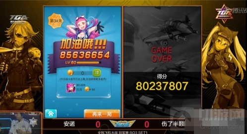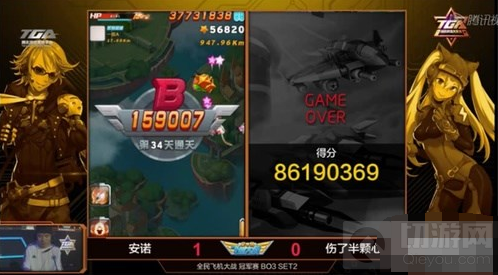 第二局:第二局双方都比较偏向于进攻,但明显安诺选手在进攻方面没有对手强。对于子弹的躲避不灵活,早早的就把血量大空,而对方几乎是满血状态。但唯一对安诺有利的方面就是对手的技能几乎全部用尽,总的来说双方都在苦苦鏖战。伤了半颗心选手在这样巨大优势的情况下却接连出现失误,满满的血条被瞬间耗尽,而安诺却凭借最后一丝血超越了对手的分数,赢下了第二局。总比分以2:0获得了腾讯tga2016《全民飞机大战》的总冠军。