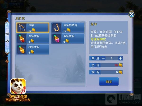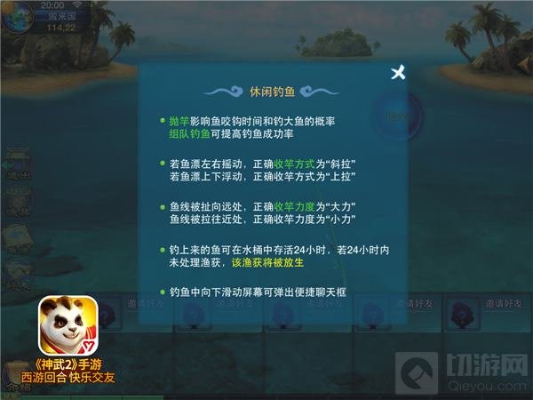 赶快去傲来国(117,33)找渔家傲大师购买鱼竿,邀齐好友共享悠闲垂钓之乐。更多《神武2》手游的相关资讯,请大家多多关注切游网。
