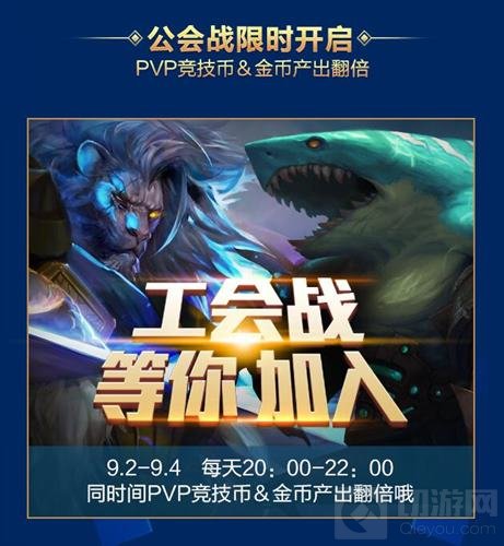 活动四、公会战限时开启 PVP竞技币&金币翻倍产出