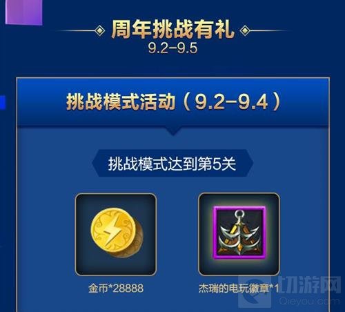 挑战模式活动(9.2~9.4),挑战模式达到第5关,可得金币*28888,杰瑞的电玩徽章*1