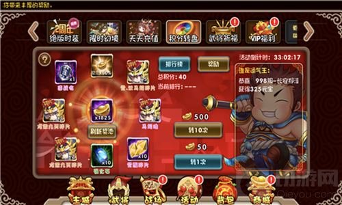 大转盘是本次三周年盛典中的全新活动。可以通过这个活动获得汉马超的三周年限定皮肤哦!每天都会有一次免费的转动机会,每转一次即可获得10积分,活动结束后积分排名第一的玩家可以获得超丰富的奖励!大转盘还有特别的奖池玩法,转盘有一个元宝奖池,活动期间所有玩家每抽奖一次奖池增加10元宝,每次十连抽奖池增加100元宝。可以点击刷新奖池按钮来获取最新的奖池金额,每次抽奖后也会自动刷新该金额。转盘的奖励之一就是获得奖池内的50%元宝,还有汉马超魂碎片、三周年专属皮肤龙傲九天碎片等等,参与人数越多奖励越丰富!