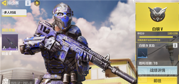 段位:青铜1-5(1-1000)、白银1-5(1001-2200)、黄金1-5(2001-3000)、铂金1-5(3001-4500)、钻石1-5(4501-6500)、战神(6500+)