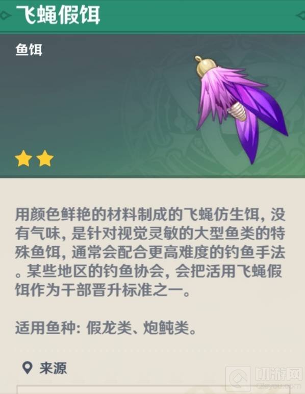 原神飞蝇假饵是鱼饵的一种,可以在合成台时使用绯樱绣球和马尾合成获得。