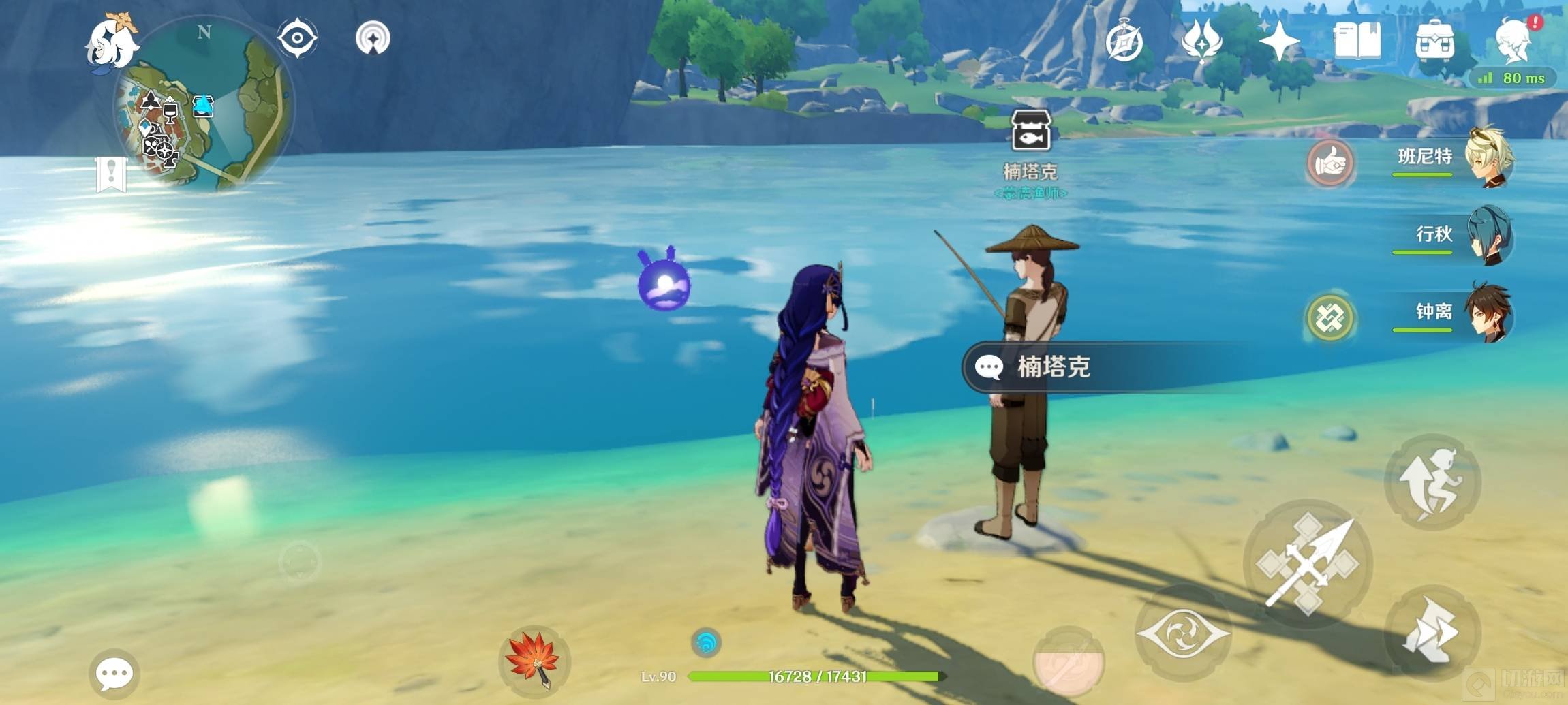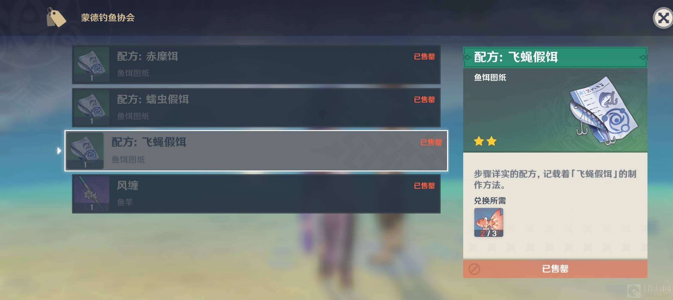 1.想要合成飞蝇假饵,我们需要先获取配方。在蒙德城外的NPC楠塔克处可以用三条花鳉兑换配方。