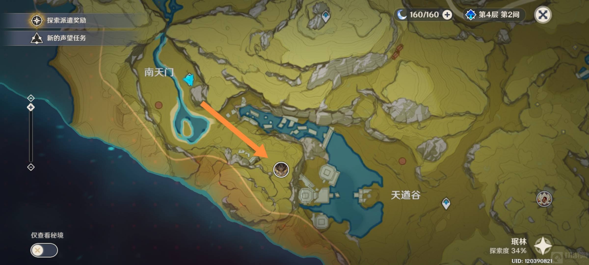 原神古岩龙蜥在天遒谷与南天门之间的岩层巨渊附近的山上,具体位置如下: