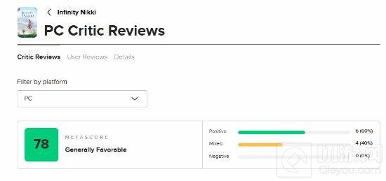 M站评分:《无限暖暖》在M站的均分为78分,共有10家媒体给出评价,其中60%(6家)给出好评,40%(4家)给出中评。