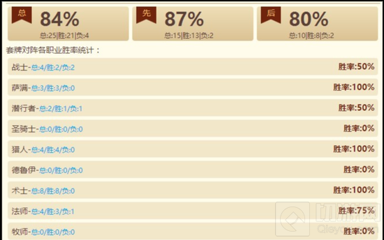 大家好,我是来自CL战队的CLVanisher,一名万场防战玩家,同时也是斗鱼TV的一名小主播。初次发帖,请大家轻喷。今天给大家分享一套自己原创的新版本标准模式的半宇宙防战卡组。先上卡组和胜率:
