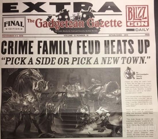 切游网的各位朋友大家好,我是小编绝世小侠,新系列《龙争虎斗加基森》被公布出来了,三大黑道家族将在加基森展开争斗,还记得之前一连写了三期的加基森日报也迎来报道的最后一篇。不过这篇报纸并没有出现在官网而是在嘉年华现场通过鱼人报童发放给大家,交代了一些背景总结了前文。四张报纸读完,我们的解读是暴雪通过日报记者来向大家展示新加基森的日常,这里的生活百态和人物形象,让玩家对日后的新牌有带入感,让三大黑道势力的争斗这样的架空剧情更加饱满。炉石源于魔兽又要脱离魔兽,走自己的路,好了,让我们一起来看炉石传说加基森日报的具体详情吧!