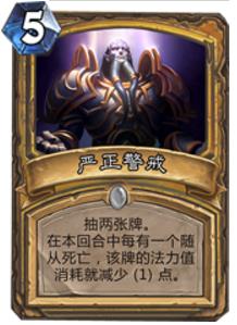 任务骑接下来的问题在于缺少稳定过牌的能力。10张buff,能带上的1费进化、神圣之力,4费王者传送门,6费骑术,最多再挂一张巨化,再算上奶解,牌库基本塞不下多少站场随从了。buff本身亏手牌,如果没有强力过牌的支持仍然会卡手卡到死。所以要想知道任务骑有没有一战之力,就看新卡里有没有一张相当于严正警戒强度的过牌了。