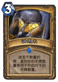神恩术:在这么一套随从曲线低,手牌消耗快的快攻卡组里,补牌也是必须的,而神恩术算是最强悍的,上限非常高,随便扔些卡,就是一波补牌。完全不担心补不上来。