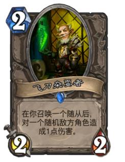飞刀杂耍者:因为很多卡都能瞬间铺2个到3个,加上卡组曲线又很低,所以铺场能力非常强,不带飞刀多射几下,对不起这么多低费随从,事实也证明效果很强,平均射击伤害有3+。