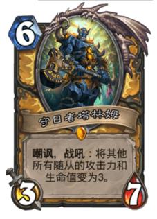 旱谷狱卒:虽然2费只有1/1对于快攻场面不利,但是亡语3个1费报告兵对于铺场还是很有帮助的,加上飞刀的存在,颇有当年飞刀+作战动员的风范。这点身材亏损值得。