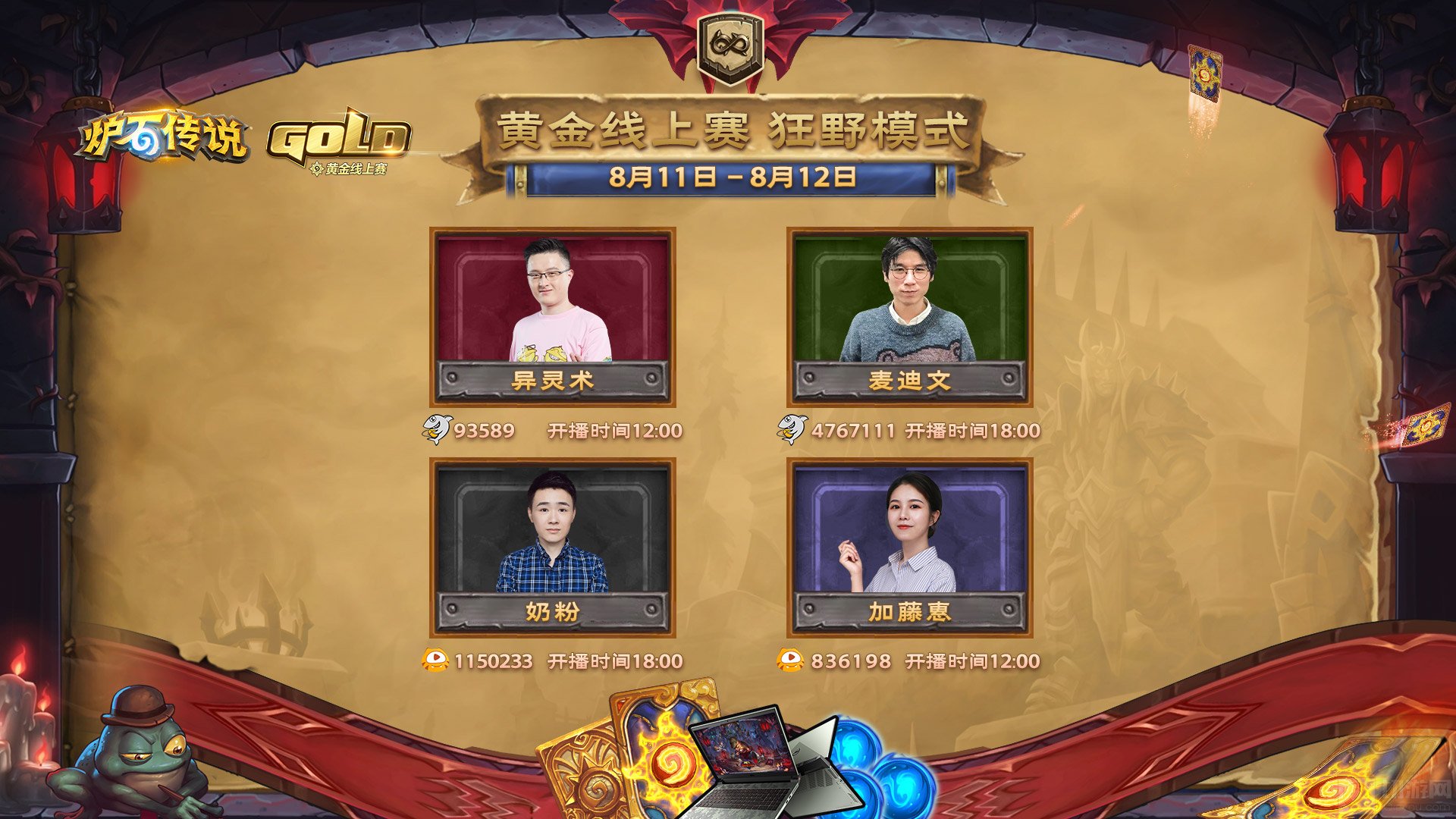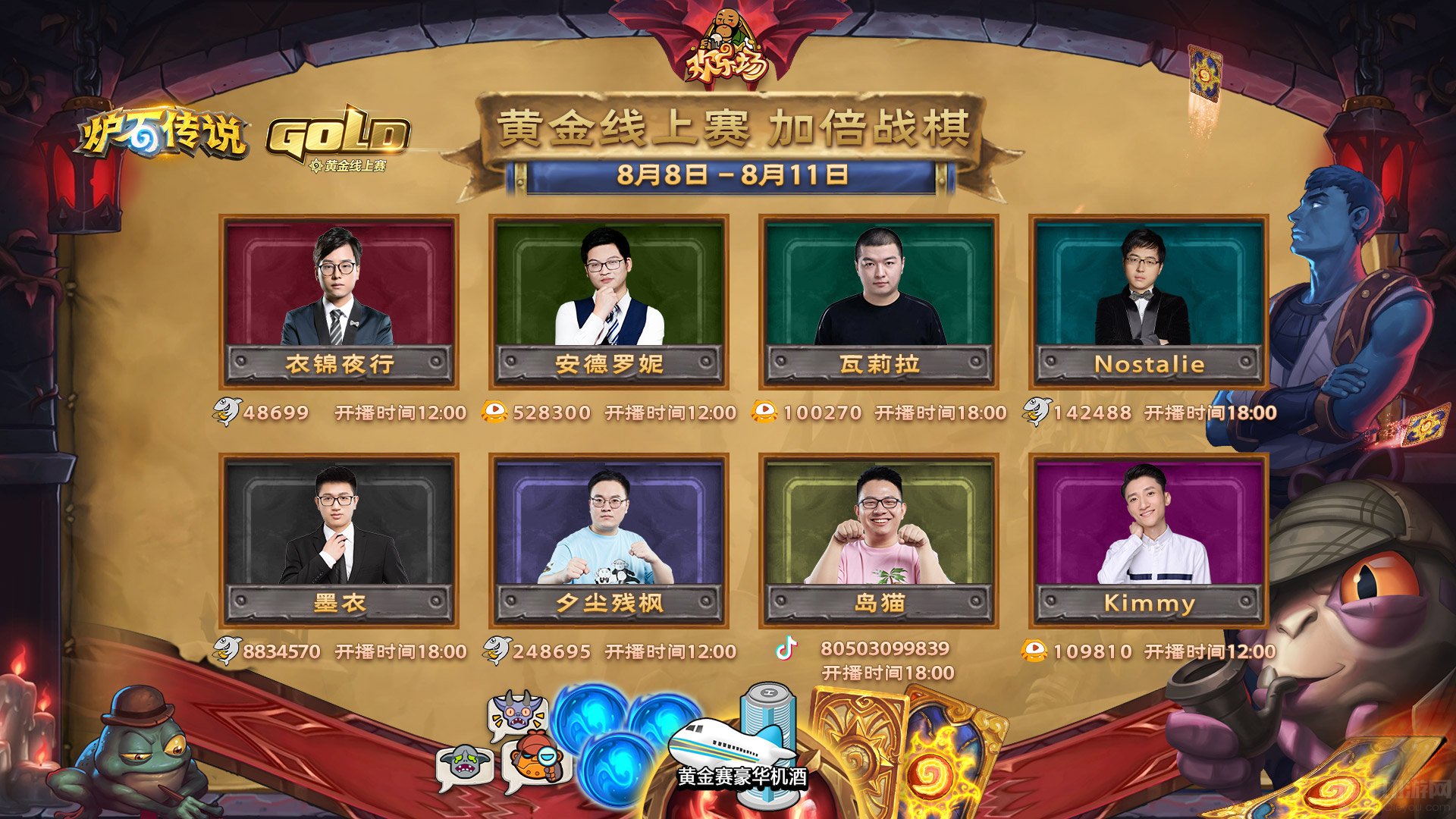 酒馆战棋欢乐场:8月8日-8月10日欢乐预选赛,8月11日欢乐总决赛。