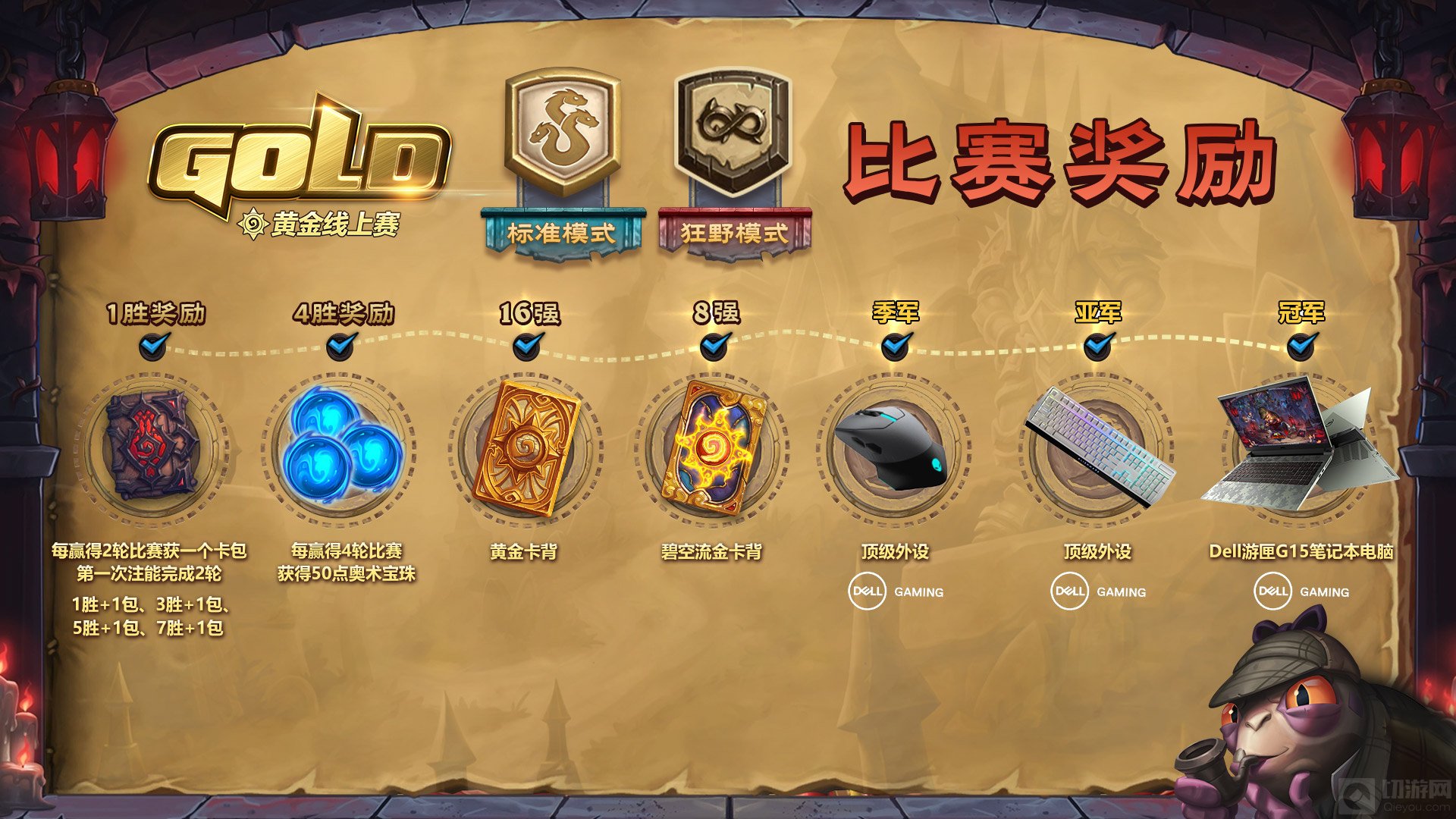 纳斯利亚堡的悬案扩展包现已上线, 8月黄金线上赛欢乐周带你开启古堡探险!三大模式17位明星主播开启阵营对决,全新版本卡包、碧空流金卡背、黄金卡背、酒馆战棋新表情礼包等你赢取!8月8日-8月14日,下载炉石传说官方插件即可参与!