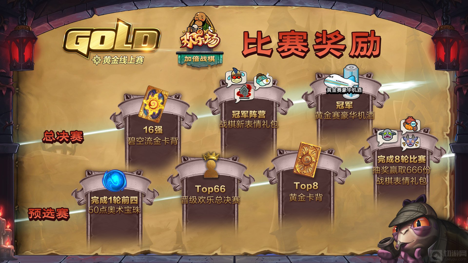 66名选手进入欢乐总决赛。冠军阵营中的每人均可获得酒馆战棋新表情礼包!