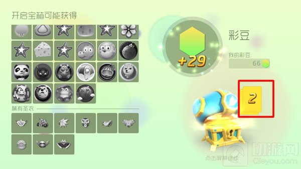 玩家可以直接领取该宝箱里面的东西,不用花费任何消耗品,也无需等待。到手,即可开启宝箱,领取奖励。在这里,你可以获得彩豆、孢子、皮肤碎片以及稀有圣衣碎片哦!小编到目前为止就获取了熊猫大侠和神烦狗的皮肤碎片,不过再接再厉吧!小编在此也衷心祝愿大家早日获取自己喜欢的圣衣和皮肤哟~
