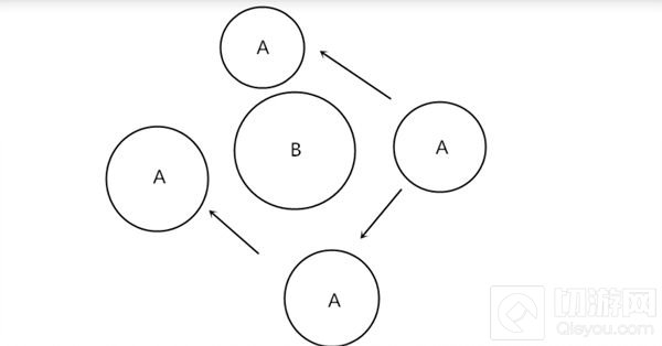如上图,我方A需要吃掉敌方,个人模式如果使用四分速合会吃掉友方,此时便可以使用旋转分身加速合体来迅速靠近敌人。