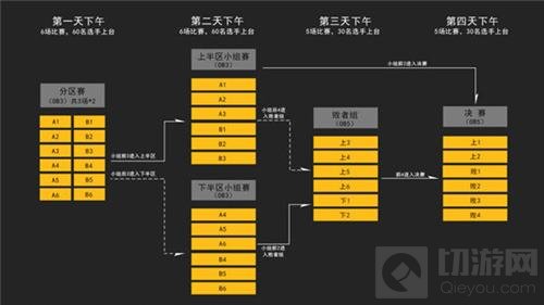 十二只队伍将在比赛首日(7月28日)通过分成A、B两组对抗的方式决出胜负,分别进入上半区小组赛、下半区小组赛。在上半区小组赛中取得前两名成绩的小组可直接晋级决赛,其余四组将与下半区小组赛中获胜的两组队伍再行对战,六进四,一争决赛席位。而此前各环节比赛甄选出的六支队伍将最终于决赛狭路相逢,一决胜负!