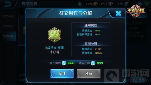 五级绿色符文最后也只有鹰眼的综合性比较适合刘备,每一个鹰眼可以+0.9的物理攻击和物理护甲穿透+6.4有穿透效果的刘备,其霰弹的威力更上一层楼,打出更可观的伤害。
