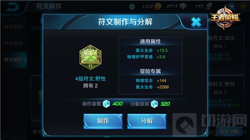 绿色符文槽:野性*10——最大生命+135 物理护甲穿透+38