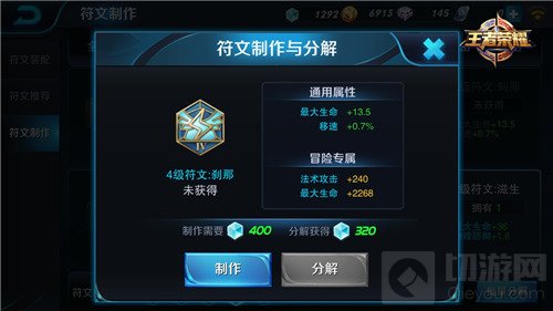 蓝色符文槽:刹那*10—— 移动速度+7% 最大生命+135