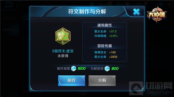 绿色符文槽:【虚空】最大生命值+37.5,冷却缩短+0.6%。