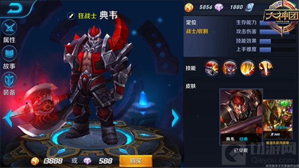 在出门技能加点上选择2技能“狂暴”,可以对野怪造成伤害的同时,并且眩晕野怪,减少一定的血量损失。而且2技能的移速加成在1级时候对打野没什么特别帮助,可以选择不加。但是在技能加点顺序上选择主点1技能“红眼”,可以增加伤害,同时缩短它的技能冷却时间,增加的他的GANK和追杀能力,也能保证野区的快速发育,是一个非常全能型的技能,所以必须主点。2技能则是用于控制,不是主要用来做伤害,所以辅点就可以,最后大招是必点,这是典韦唯一一个位移技能,而且是真实伤害,非常可怕的技能,必点不用多说。