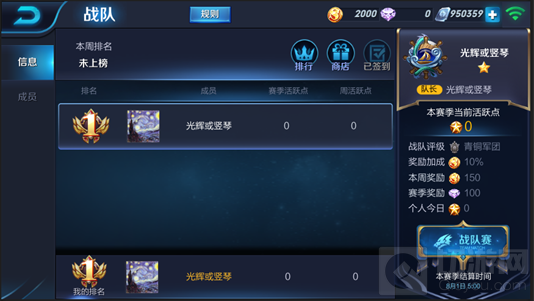 在有战队赛的结构下,已有界面层级显得有点冗余不好操作,因此我们把原有的战队主页和战队竞技界面合并为了一个战队信息界面,并优化了信息展示。现在大家在进入战队主界面的时候,即可查看到战队信息,自己和其他队友的活跃点情况,并进行签到,访问战队商店,查看战队排行,开启战队赛等操作。另外,现在直接点击成员头像就可以参看成员的资料了哟