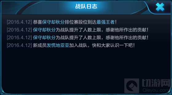 新增了战队日志,可以在其中看到战队信息的变化、以及战队成员的变化记录。