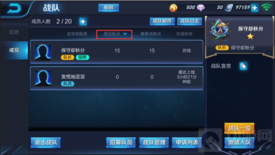 成员列表排序功能:可以通过点击列表上方的列标题,对应选项进行降序排序,这样可以更清晰的看到战队成员的表现。