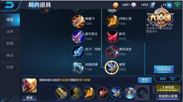 破军:破军目标生命低于50%时伤害提高30%的被动效果让悟空收割能力变得更为突出。对暴击要求高的玩家可以选择再出一件无尽,这样三件暴击率会达到60%基本命中就会出暴击,打出3000+的伤害是没有问题的。