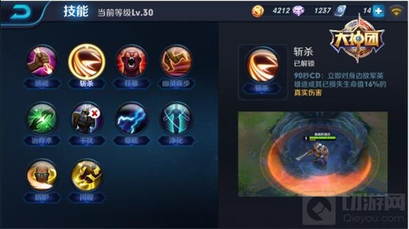 解析:这是现阶段孙悟空唯一的控制技能,使用这个技能时一定要注意时机的选择,以为这个技能范围相对较小,如果释放不当很可能会出现空大的情况。在抓人时要在敌人脱离范围之前使用,在团战中要在敌人站位相对密集的情况下使用。