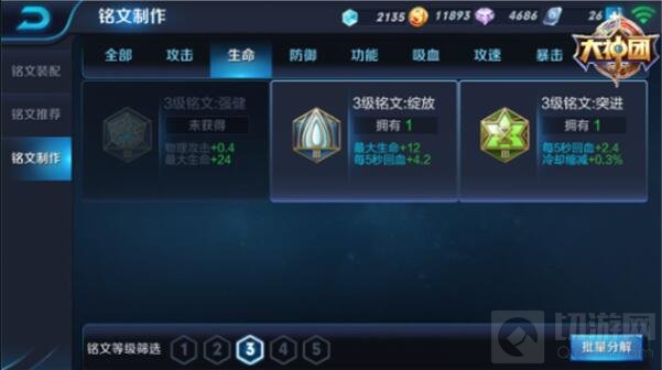 5级铭文的价格较高,大部分玩家很难短时间内迅速凑齐该套铭文,不妨选用一些3、4级或者1、2级铭文进行组合,只要选择合理搭配得当同样可以达到不俗的效果。虽然总体增幅相对5级铭文逊色很多,但是胜在价格便宜,相对收集简单。在选择替代铭文时要仔细斟酌,尽量实现效益最大化,主要针对对其生命回复能力、防御能力和最大生命值等几大主要方面进行提升。