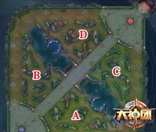 地图中红色和蓝色方分别有上下两块野区,蓝色方上方分别有2个普通野怪和一个苍蓝石像怪,而苍蓝石像怪击杀后可获取一个苍蓝石像之力的BUFF,提供20%的技能冷却时间和每秒2%的法力恢复,对于一些靠技能吃饭的英雄特别是法师,大大缩短技能的输出链,也增加了线上的续航能力。而蓝色下方则是2个普通野怪和一个绯红石像怪,而绯红石像怪击杀也能获取一个红BUFF,不过绯红石像之力则是攻击带有灼烧伤害,同时带有减速效果,比较适合一些物理输出,用于增加普通攻击伤害和粘人。而红色方的地图中的野怪则是刚好跟蓝色方相反,其他并无任何差别。河道下方则是巨龙,击杀后能获取大量经验以及金币,得到巨龙的队伍可以在等级上直接碾压对手,劣势队伍获取巨龙则能在等级上迅速扳回来,所以不要放过任何一条巨龙。而地图中河道上方则是暗影主宰,击杀后则可以获取一个团队BUFF,提供全队伤害30%,外加每秒1%的回血和回蓝,在后期基本上就是得主宰者的天下,在双方装备相同的情况下,30%的伤害加成足以轻松团灭对手,所以在后期对大龙的争夺上千万不要放弃。