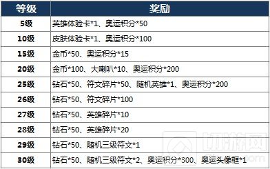 根据历史获得的奥运积分,会提升玩家的奥运等级,等级提升不消耗奥运积分,等级和积分对应关系如下: