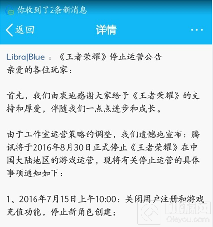 欢迎您来到王者荣耀!近日,小妲己接到部分召唤师询问及反馈,在部分渠道出现一篇名为“王者荣耀停止运营公告”的不实信息!在此,妲己宝宝代表王者荣耀项目组郑重声明:所有关于王者荣耀停止运营的信息皆为谣言,是部分具有不正当企图的人故意抹黑的行为。