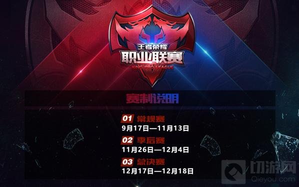 《王者荣耀》职业联赛分为常规赛、季后赛和总决赛。9月17日至18日,我们将迎来《王者荣耀》职业联赛的首周比赛,12支战队将悉数亮相,以全新的面貌直面挑战。自9月17日至11月13日我们将开展为期八周的循环积分对决,常规赛积分排名前八的战队将晋级季后赛,为职业联赛总冠军以及高额的赛事奖金继续奋力争夺!