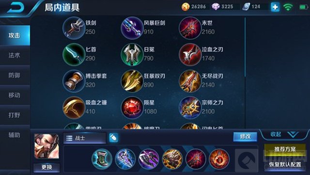 六神装:抵抗之靴、暗影战斧、极寒风暴、魔女斗篷、不祥征兆、破军