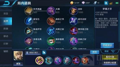 解析:因为现版本扁鹊过于强势,所以这套出装是针对扁鹊所出的,对面有蔡文姬,曹操,杨戬等回血能力强的也可以使用,梦魇之牙能大幅限制敌方回血能力,抵抗之靴减控保平安。