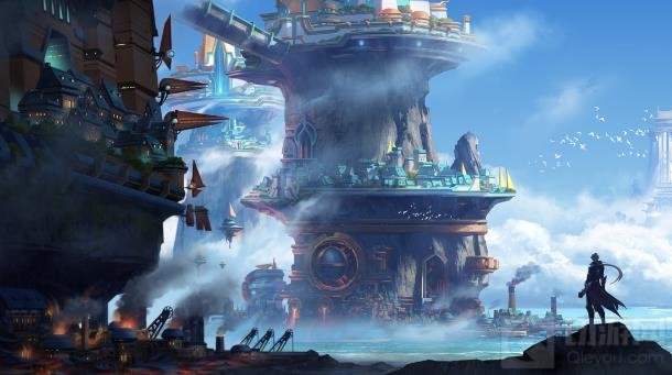 从图上来看这个这是一座海上的城市,而右下角有一个像铠的人物。不过在狂铁的原画中,这个人好像出现过。
