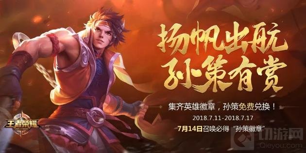 2.只要集齐7个英雄徽章,便可在7月17日上午免费兑换孙策永久英雄(每个账号兑换一次)。